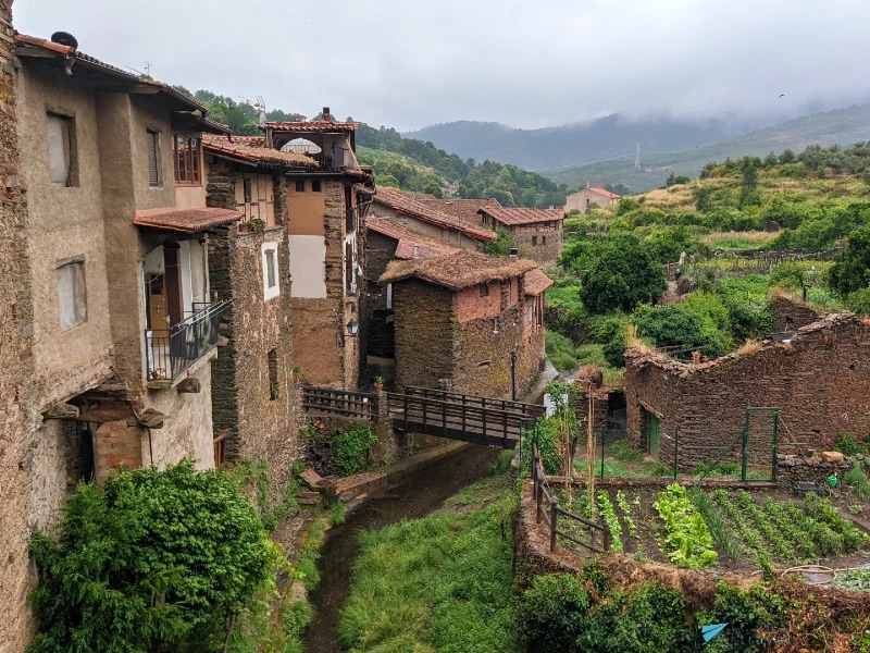 Qué ver: Robledillo de Gata es miembro de la red de Los Pueblos Más Bonitos de España. Sus calles empedradas y casas de piedra y pizarra forman un conjunto histórico perfectamente conservado. Destacan la Plaza de la Iglesia, el Molino del Medio y la ribera del río Árrago. Pasear tranquilamente 45–60 min permite capturar la esencia del pueblo y tomar fotografías únicas.